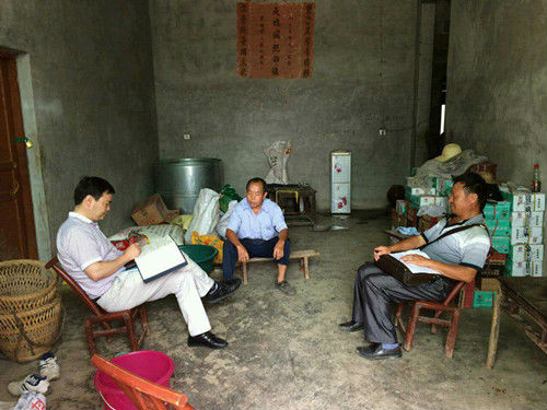 张院长一行首先来到田家寨村委会,详细了解了田家寨整村概况,摸底了本村扶贫户的分布情况。据该村书记向官福介绍,田家寨村共有5个村民小组,398户1627人,其中贫困户83户347人,这些贫困户中有44户已经通过养殖业、种植业来发展经济。听完村书记介绍情况,张院长强调,田家寨村扶贫工作时间短、任务重,此次工作要按照县委实施精准扶贫“四步八一”的工作要求,切实做好实地查看、调查走访、绘制民情地图、产业链分布图等工作。