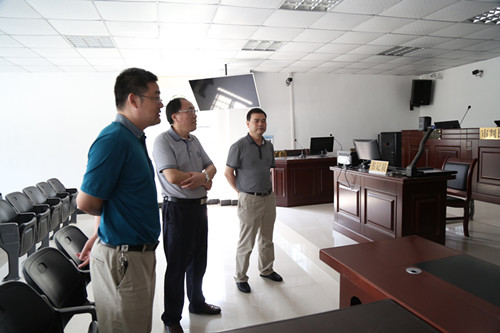 许院长实地查看了正在进行文化建设中的绿水科技法庭,详细查看了装修图纸,询问了施工进程,并与法庭干警亲切交谈,了解干警目前的工作环境、案件受理、科技法庭运用、文化建设、信息化建设等情况,并对法庭的建设水平和规范管理给予了正面评价。他指出,要大力加强信息化建设,逐步完善各项硬件配套设施,提高科技法庭运用率,努力实现人民法院审判体系和审判能力的现代化;要以此次法庭文化建设为契机,对法庭文化建设及法庭周边环境改造进行统筹规划,打造具有区域特色的示范法庭。