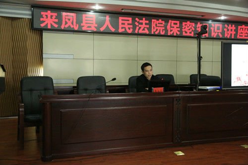 来凤法院网讯(通讯员孔彬彬)为增强全体干部职工的保密意识,提高保密工作水平, 2014年12月1日,来凤县法院邀请恩施州保密局副局长王必庆为干警作保密知识专题讲座,会议由院长张辅军主持,其他院领导及全体干警参加了培训。
