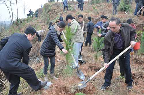 来凤法院网讯(通讯员 陈宜靖)植树节,彩旗飘;舞铲快,挥锹忙。3月12日,来凤县法院组织干警到仙佛寺景区规划地段开展植树造林活动。干警们发扬一不怕苦、二不怕累的顽强拼搏精神,个个热情饱满,兴趣盎然,或三人一组、或二人配合,有的奋力挥着锄头挖树坑,有的手持铁锹培土,有的从山下接来山泉浇灌树苗。泥土弄脏了裤脚,荆棘刺破了手掌,大家都全然不顾,尽管三月的春风还略带寒意,干警们脸上却汗水淋漓,细心地将一棵棵爱心树苗种植在沟沟坎坎上。经过一上午的努力,圆满完成了种植任务,为来凤县建设“生态宜居之城”贡献了自己的力量。