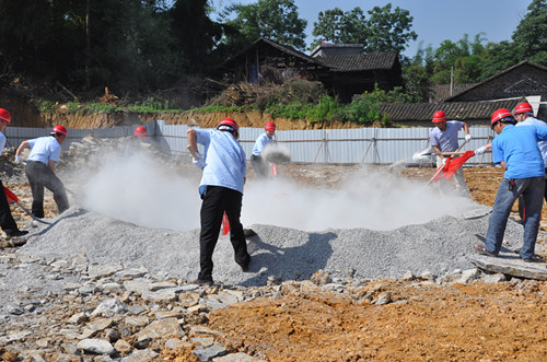 在张辅军院长宣布绿水法庭审判楼建设工程开工奠基仪式开始后,院领导和嘉宾们手持铁锨为审判楼培土奠基。